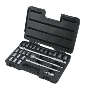 Socket Sets 1/2" dr. 6pt sockets and accessories Includes: 3/8", 7/16", 1/2", 9/16", 5/8", 11/16", 3/4", 13/16", 7/8", 15/16", 1" (10, 11, 12, 13, 14, 15, 16, 17, 18, 19 mm) 10" extension bar, quick release ratchet, 15" flex handle, universa... Read more