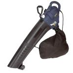 Electric blower-vacuum. 11 A. 270 km/h air velocity. 3 functions: blows, vacuums and shreds. 150-L bag capacity. Shoulder strap and adjustable auxiliary handle.