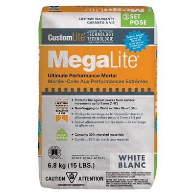 Custom Building Products MegaLite Crack Prevention Mortar offers exceptional bond strength and flexibility to withstand horizontal substrate movement up to 1/8". 40% lighter than other mortars. Provides non-sag/non-slip on walls and excellen... Read more