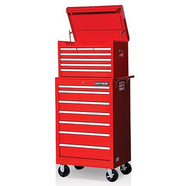 Only at Sears! 7-drawer top chest: drawers: six 2" h., one 3 1/2" h.; 2 insert side handles 7-drawer cabinet: drawers: four 4 1/4" h., two 5 3/8" h., one 2" h.; side handle drawers glide on ball-bearing slides keyed locks cabinets move on... Read more