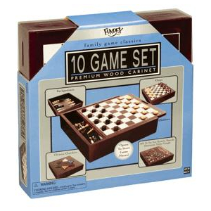 Premium 10 Game Wood Set Solid wood game board and storage box includes 10 classic games Ages 3 + INCLUDES: Mancala pieces Backgammon pieces Chess pieces Checkers pieces Chinese Checkers pieces Elimination pieces Mill pieces Hysteri... Read more