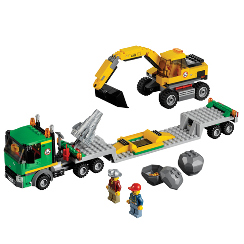LEGO City Escavator Transport (4203) The LEGO City Mining Transporter and Excavator help make quick work of heavy loads. Unload the mighty Excavator from the Transport trick, fasten the drill, and start breaking through the rock to find the gold... Read more