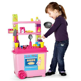 12'' w. x 18'' l. x 16'' plastic kitchenette on wheels accessories included ages 1 year old and up