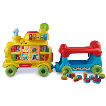 Make tracks with the Sit-to-Stand alphabet train, teaching toddlers letters, numbers, colours, songs, stories and more! The Sit-to-Stand alphabet train features 13 double-sided letter blocks, a book with 6 turning pages, 5 colourful number buttons... Read more