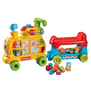 Make tracks with the Sit-to-Stand alphabet train, teaching toddlers letters, numbers, colours, songs, stories and more! The Sit-to-Stand alphabet train features 26 double-sided letter blocks, a book with 6 turning pages, 5 colourful number buttons... Read more