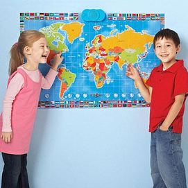 map ‘talks' when your child presses on it 1000 facts and quiz questions 2 skill levels challenge mode with score keeping for 2 teaches children about capital cities, languages, flags and more batteries included; ages 6 years and up