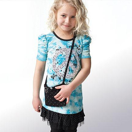 Girl Confidential(TM/MC) Glitter-print Aqua Ruffled Tunic with Capri and Purse view