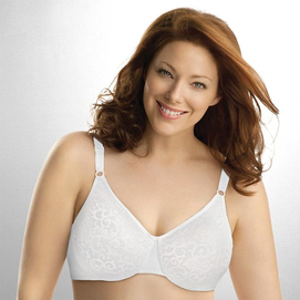 style #5002 firm support smooth jacquard lace cups for a sleek look nylon-LYCRA® elastane hand wash adjustable straps and back-hook closure hang to dry stay-in-place strap design LYCRA® is a registered trademark of INVISTA.