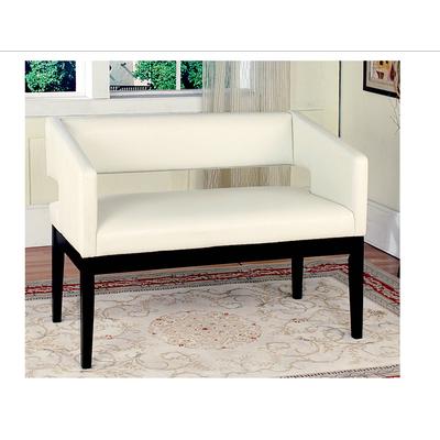 This contemporary settee has clean simple lines that goes with most décor. It's unique cut out back adds flair. Crisp contrast appears between it's dark wood base and ivory cushion seat. Strong sturdy construction made of solid wood in a chocolat... Read more