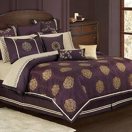 The duvet cover is framed with a solid merlot flange and enhanced with a gold satin ribbon. 1" flange and ribbon on all three sides Duvet cover is oversized Machine washable