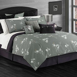 Flore' is a graceful floral design in sophisticated tones of grey and charcoal with highlights of deep amethyst and citron. The comforter is trimmed with deep amethyst velvet piping and reverse to the deep amethyst colour. Size... Read more