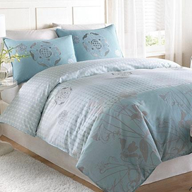 Moon Dance is uniquely designed with an underlining subtle geometric pattern with a bottom floral border complimented by embroidered medallion motifs. The soothing palette makes Moon Dance a very sophisticated duvet cover set. This duvet set envokes... Read more