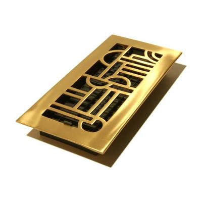 Decor Grates Elite 4x10 Solid Brass Floor Register Art Deco Design - Satin Brass Finish view