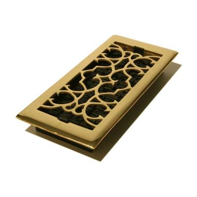 Decor Grates Elite 4x10 Victorian Design Solid Brass Floor Register - Bright Brass Finish view