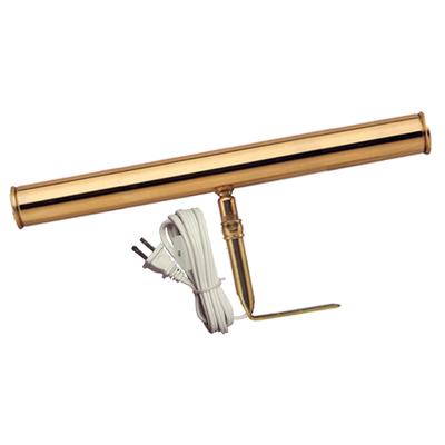 Elegant Brass finish 14" (35.6cm) Picture Light. This steel fixture is completed with a 5-1/2' (1.68m) cord and in-line switch. Brass Finish Bulbs and hardware included Rotates and Swivels