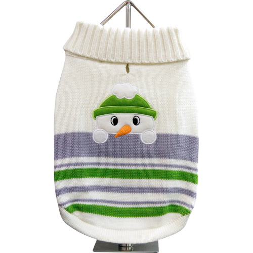 Your extra-small dog will stay cuddly warm in this adorable turtleneck sweater featuring a fun snowman patchwork design in white with green and lavender accents. This cute doggie sweater will definitely set your pup apart from all the rest when yo... Read more