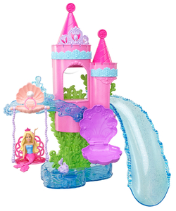 Sized for both Small Doll and Fashion Doll Mermaids, there are plenty of play areas to make a splash! Take a mini-mermaid down the translucent glittery slide or set her on the pretty pink swing; Fashion Dolls (not included) can also ride the slid... Read more