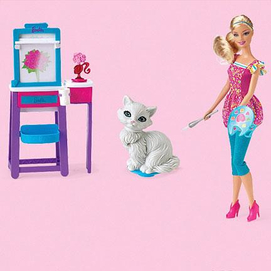 Your daughter can live out her dream of being an art teacher! Barbie I Can Be... dolls and accessories empower girls to play out different roles and ''try on'' fabulous careers, including art teacher! Press the lever in Barbie doll's back to mak... Read more