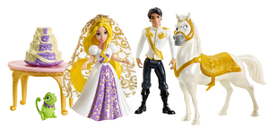 Girls will love reliving the couple's special day with this wedding gift set. Dressed in elegant wedding attire, Rapunzel and her handsome prince are joined by their faithful attendants, Maximus and Pascal. A delicious-looking wedding cake let... Read more