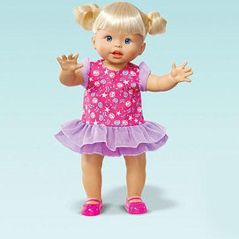 motion sensors activiate her fun, silly moves and phrases doll dances to 3 fun songs speaks English only batteries included 16" h. ages 2 years and up