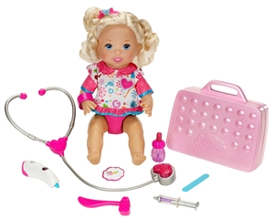 As girls check on their “toddler” with the included medical instruments, the doll will interact with all sorts of phrases. She responds “Ahhhh.” to the tongue depressor and giggles when the reflex hammer makes her knee pop up (it really kicks). Th... Read more