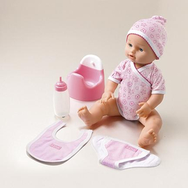 Only at Sears!15'' high dollhard bodyincludes feeding bottle, potty, diaper and bibages 3 years and upcries realistic tearsno batteries requiredshe drinks water from her bottlepush a button & she cries after drinkinggoes potty after drinking