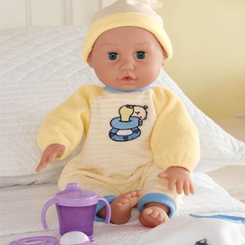 She talks ‘baby babble' and moves her arms and legs when held in the standing position 18" h. posable arms and legs non-interactive accessories include plastic sippy cup, plastic rattle and fabric bib uses 4 ‘AA’ batteries, not included ages... Read more