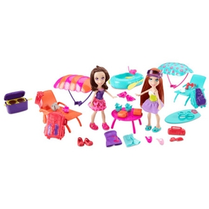 Mini Dolls Polly Pocket Stunt and Style Friends This item features two color-change dolls plus travel and action-themed piece-count for Polly doll and friends to travel in style For ages 4+