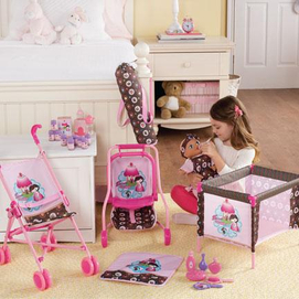 Only at Sears! 16" h. doll includes umbrella stroller, 5-in-1 swing/high chair, play yard with storage bag and play mat plus 22 more play and feeding time accessories assembly required ages 3 years and up