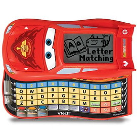 2-in-1 vehicle slide-out QWERTY keyboard with 20 activities teaches letters, numbers, patterns, shapes, typing and more batteries included 3 1/10" w. x 6 7/10" l. x 2" h. ages 4 to 7 years ©2011 Disney/Pixar™ Disney